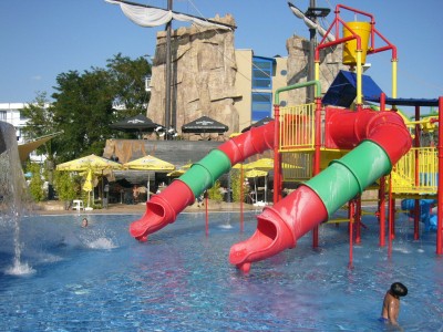 Aqua park na slnečnom pobreží - dobré stredisko na vybláznenie sa po náronej ceste. Ceny v areáli podstatne vyššie, napr. pol litra nealka 2EURa.
